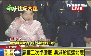 中新網3月3日電 據臺灣TVBS報道,陳水扁夫人吳淑珍3日下午在兒子陳致中的陪同下再度出庭,除了今天氣溫比較低,會不會對吳淑珍身體狀況造成影響之外,今天在庭上,吳淑珍會不會幫丈夫陳水扁求情解除羈押,外界也很關注。以下為法庭攻防實錄: