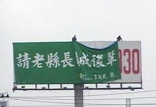 中新網(wǎng)4月14日電 據(jù)臺(tái)灣“今日新聞”報(bào)道,民進(jìn)黨臺(tái)南縣長(zhǎng)人選早已確定,但是陳唐山仍堅(jiān)持不退選。被提名的“立委”李俊毅14日表示,已在中山高永康交流道北上路段架設(shè)“請(qǐng)老縣長(zhǎng)牽成后輩”廣告牌,希望能勸退陳唐山。