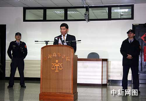 一月七日中午,臺(tái)灣高等法院駁回陳水扁對(duì)二度遭到羈押的抗告,高院認(rèn)為陳水扁委任律師所提抗告沒(méi)有理由,因此予以駁回。全案就羈押部分不得再提抗告。圖為臺(tái)灣高等法院發(fā)言人溫耀源在記者會(huì)上宣布裁定結(jié)果并解釋裁定書(shū)。 (圖文/中新社記者 陳立宇)