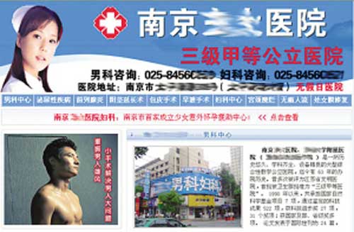 率先發(fā)現(xiàn)這一事情的是某李毅球迷組織,他們的偶像李毅竟然上了南京某性病醫(yī)院的宣傳網(wǎng)站的頭條位置。一則廣告是李毅低垂著腦袋,下面配的文字是“東大男科恢復您的自信與健康”,而另一則廣告則更加“露骨”,李毅的半身裸照配著“小手術(shù)解決男人大問題,重振男人雄風”的文字。某球迷憤憤不平地表示:“這樣的文字,再配上大帝裸露上半身的照片,給人的感覺要么是李毅通過這樣的手術(shù),重振‘雄風’的,要么就是李毅成了這家性病醫(yī)院的代言人!”