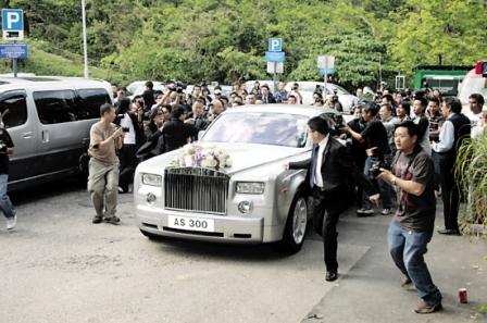 蔡少芬和張晉在香港西貢一間教會(huì)中心舉行西式婚禮,同樣聚集了大批記者采訪。婚禮沒讓記者入內(nèi)觀禮,只以礦泉水等招待記者。香港媒體估計(jì),整個(gè)婚禮費(fèi)用只花了10萬港元左右。記者 陳明輝