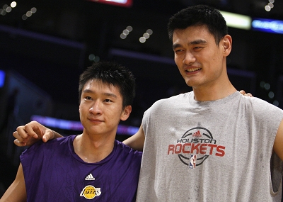 賽前的訓練行將結束,又到了老友會的時間。孫悅顯然沒有意識到這一點,還在繼續練著球!皠e練了,過來!币γ鞔驍嗔藢O悅的訓練。孫悅告訴姚明自己一切都好,就是有些想念國內的美食,“一切都還好,就是找不到地方吃麻辣小龍蝦,有點想念北京的簋街了!币γ鲃t以“大哥”身份給了孫悅忠告:“從替補到主力,我在國家隊、在火箭隊都是這么過來的,這是一個球員必經的過程。你還很年輕,而且有上進心,希望能夠盡快得到上場機會!辈贿^,據《洛杉磯時報》透露,孫悅將在11月28日被湖人正式下放到NBDL。期待中的中國德比,改年再見,前提是湖人愿意召回孫悅。