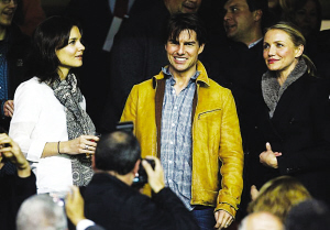 眾所周知,好萊塢大牌影星湯姆·克魯斯因?yàn)榕c貝克漢姆夫婦是密友,因此受到小貝的影響,阿湯哥對(duì)足球也有一定興趣。在昨天的歐冠比賽中,阿湯哥“叛變”了皇馬與米蘭,轉(zhuǎn)而來(lái)到現(xiàn)場(chǎng)為西甲勁旅塞維利亞吶喊助威。這一次,阿湯哥捧場(chǎng)的是塞維利亞主場(chǎng)與蘇超格拉斯哥流浪者的比賽。現(xiàn)場(chǎng)觀戰(zhàn)歐冠,阿湯哥的排場(chǎng)也很大,身邊伴隨了兩位大牌美女,一是他的嬌妻凱蒂·赫爾姆斯,另一位則是好萊塢著名美女影星、阿湯哥的好友卡梅隆·迪亞茲。