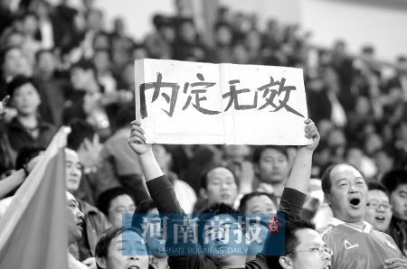 2∶2,到嘴的“北京烤鴨”又飛了,航海20558名球迷憤怒了,“黑哨、黑哨”,討伐聲直沖云霄。賽后,余怒未消的中原球迷將比賽中屢屢挑釁的“綠毛龜”圍在看臺上,讓他們膽戰心驚多凍了一個多小時。最有意思的一幕發生在場外,前來觀戰的國足主帥高洪波也不幸受到牽連,被中原球迷“國安是老二”、“足協是冠軍”喊得灰頭土臉,在楊楠的護送下快步逃到商務車上匆匆遁去。十分關注本場比賽的省委書記徐光春也在賽后通過秘書發短信給楊楠,贊揚了建業將士的拼搏精神。好在,亞泰和魯能本輪也裹足慢走,建業還以微弱優勢領跑。