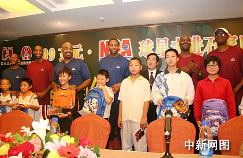 中新網(wǎng)石家莊9月1日電 (記者 艾廣德)繼戴維斯、卡爾德隆上月亮相石家莊后,河北的籃球迷們今天又迎來(lái)麥蒂領(lǐng)銜的十位NBA球星,不過(guò)這次球星們是來(lái)獻(xiàn)愛心的。