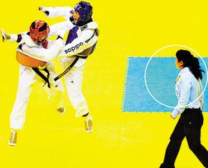 什么是“保障工作”?為了弄清事實的真相,記者先后采訪了多名跆拳道業內人士,其中既有其他省市的教練員和運動員(浙江省隊的教練員和運動員守口如瓶,據說相關方面早已下達封口令),也有相關的裁判員。最終,記者發現,龐海遠的死還真的與浙江省跆拳道“丟金”有著某種無以言表的神秘關系。