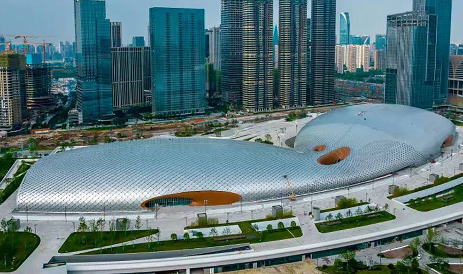 杭州奧體中心游泳館為亞運會游泳、跳水、花樣游泳項目比賽場館及訓(xùn)練場館,位于杭州市蕭山區(qū),總建筑面積53959平方米,觀眾席位數(shù)約6000個,是一個集游泳、跳水比賽和訓(xùn)練為一體的專業(yè)運動場館。場館擁有雙館合一的設(shè)計理念、獨特的流線造型,結(jié)合雙層全覆蓋銀白色金屬屋面,和兩翼張開的平臺形式……作為世界上最大的兩館連接體非線性造型場館,無論白天夜晚,顏值都超高。