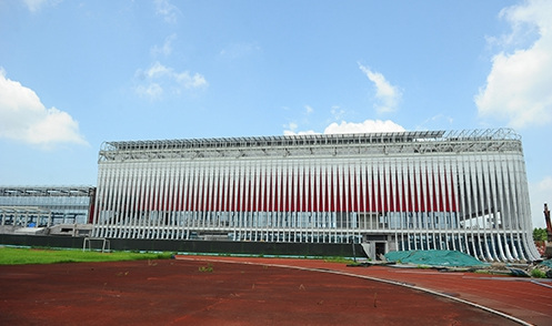 濱江體育館為亞運會羽毛球項目比賽場館及訓(xùn)練場館,位于杭州市濱江區(qū),含主比賽館及熱身館??偨ㄖ娣e58224平方米,觀眾席位數(shù)3900個。