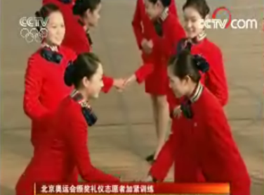另據(jù)中央電視臺(tái)報(bào)道,練站姿,包括要穿五厘米的高跟鞋,頭上頂課本、膝蓋中間夾白紙,站上一個(gè)小時(shí)要求書和白紙都不能掉下來。她們美麗溫柔的笑容,也都是經(jīng)過標(biāo)準(zhǔn)化訓(xùn)練的。“笑要露六到八顆牙,一定要是發(fā)自內(nèi)心的微笑,”一位頒獎(jiǎng)禮儀志愿者面對(duì)鏡頭如是說。