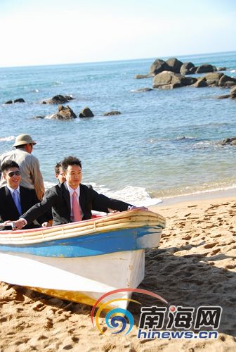 進(jìn)入天涯海角景區(qū)門口,黎家阿妹阿哥跳起了海南特色竹竿舞,新郎新娘也獲邀齊跳吉祥竹竿舞,沒想到平時在賽場表現(xiàn)游刃有余的體操冠軍楊威竟在此時顯得木訥笨拙,三步兩步并跳過關(guān),倒是新娘楊云跳得柔美歡快。(趙仕芳)