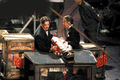 《木乃伊3》的故事來到戰(zhàn)亂的上海灘,秦朝的木乃伊將要復(fù)活,探險(xiǎn)家和軍閥幾乎同時(shí)而至。正在拍攝的有多場飛車戲,男主角布蘭登·弗雷澤也不例外,新科女主角艾佛林開車,他則站在煙花車的車斗里,用“中國火箭”對(duì)瘋狂的“兵馬俑”部隊(duì)發(fā)動(dòng)襲擊,整條南京路都彌漫著硝煙味。