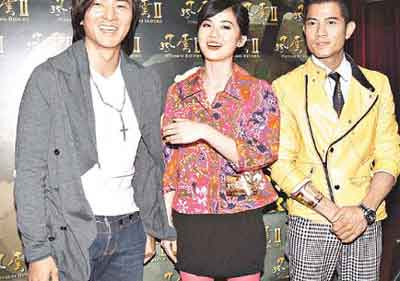 中新網3月19日電 鄭伊健與郭富城在電影《風云Ⅱ》記者會上,一同在臺中央落座,凸顯一哥地位。