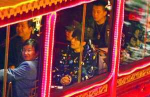 記者想詢問這條船上一個座位多少錢,“聚寶號”導(dǎo)游戴小姐卻告訴記者:“這條船一般不租,只有領(lǐng)導(dǎo)才能坐!碑(dāng)夜,這條船上還有秦淮區(qū)政府的幾名領(lǐng)導(dǎo),但因為杰倫來了,船上一切似乎都是為杰倫所設(shè)。原本船內(nèi)的卡拉OK放著古樸的音樂,大家要導(dǎo)游換成了周杰倫的《千里之外》,全都聽得津津有味。