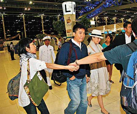 中新網7月18日電 梁朝偉和劉嘉玲下周一(21日)將在不丹舉行婚禮,前日(16日)他們帶著十箱行李飛赴不丹。一對準新人前晚抵達曼谷時均滿面春風,并在機場免稅店狂買約30瓶香檳及80條香煙?磥矶说幕槎Y已準備煙酒齊飛,向來喜歡小酌的新娘子必定不醉無歸。