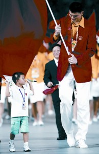 運(yùn)動(dòng)員入場(chǎng),頭上有個(gè)疤痕的小男孩牽著姚明的手步入,開心地?fù)]手。他是林浩,他的父親林大坤在接受晨報(bào)記者采訪時(shí)透露,開幕式結(jié)束后,林浩用“很自卑”形容自己和姚明走在一起的感受,原話是:“我很自卑。他是全場(chǎng)最高的人,我是全場(chǎng)最矮的人。”