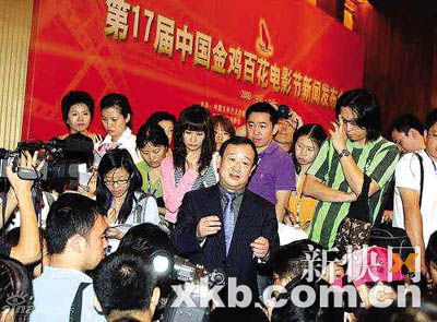 昨日上午11點,第17屆金雞百花電影節新聞發布會在大連的富麗華酒店如期舉行,來自全國各地的百余家媒體記者們都齊聚一堂,聽電影節組委會關于提名影片規則方面的老調重彈。正當大家都有點昏昏欲睡的時候,一位來自吉林某電視臺的記者突然提出了一個問題:“為什么讓大眾評委觀摩的影片由最初決定的10部變成了9部,獨獨缺了《滿城盡帶黃金甲》(以下簡稱《黃金甲》)?”臺下的記者們聞言頓時議論紛紛,而臺上的電影節領導們也都表現得十分意外,由此引發了電影節開幕最大的話題——《黃金甲》為何退賽了?