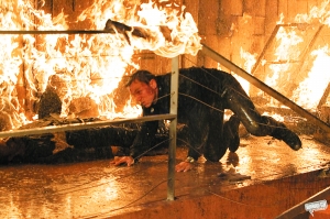 從《皇家賭場(chǎng)》開始,邦德再次回到寫實(shí)風(fēng)格,克雷格回憶說(shuō)《量子危機(jī)》里他跑到疲于奔命。影片的時(shí)長(zhǎng)是所有邦德片中最短的,但動(dòng)作戲卻兩倍于《皇家賭場(chǎng)》。四場(chǎng)打斗戲不容錯(cuò)過(guò),意大利的追逐、奧地利大眼睛劇院的群毆、巴拿馬夜宴的混戰(zhàn)及最后智利沙漠的終極PK。意大利追逐戲是現(xiàn)下非常流行的“跑酷”(Parkour)風(fēng)格,需要克雷格在建筑物間靈敏穿梭,拍攝前兩個(gè)月的魔鬼訓(xùn)練讓他身心俱疲。而克雷格覺得最困難的是一場(chǎng)船上打斗戲,因?yàn)榇頁(yè)u晃,令他覺得如同坐過(guò)山車,拍得膽戰(zhàn)心驚,那場(chǎng)戲花了兩個(gè)星期才拍成。