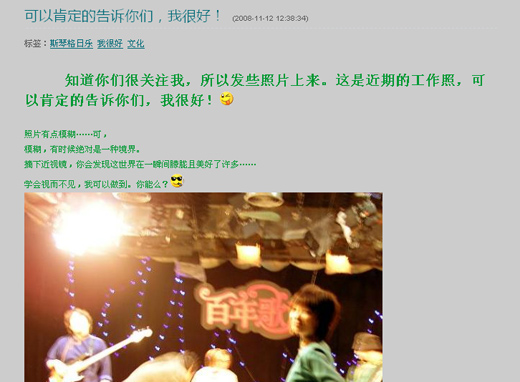 斯琴格日樂在博客中寫道:“知道你們很關注我,所以發些照片上來……可以肯定地告訴你們,我很好!”新民網記者在其博客中看到,斯琴格日樂在博客照片的描述中稱,自己可以做到視而不見。