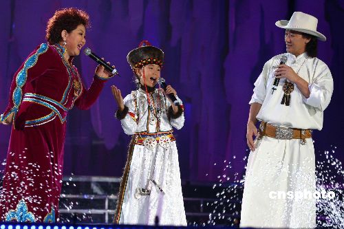 中國國際廣播電臺主持人布仁巴雅爾創作,并由他和妻子烏日娜以及7歲的小侄女英格瑪上臺演唱的《吉祥三寶》清新自然,頗受歡迎。