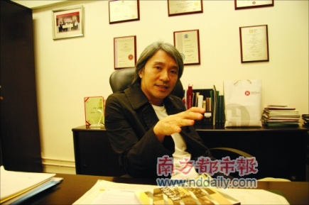 25日晚上九點鐘在寫字樓找到星爺。是他約在這個地點見面的,他和同事開會還沒結束,但為了這次是非,不得不見一見記者。當記者在他的辦公室見到他時,星爺一面倦容,滿面須根,問他是否受到打擊,情緒落寞,不修邊幅?