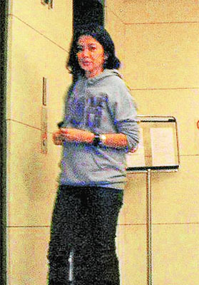 關之琳用餐結束后,先離席去等電梯,機警東張西望。