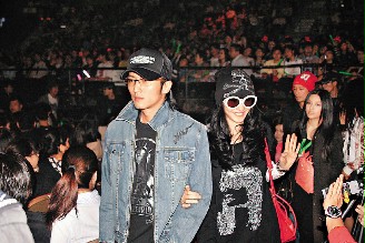 據臺灣聯合報報道,張柏芝與謝霆鋒抱著兒子姍姍來遲,陳奕迅演唱會開場時才現身,張柏芝穿著一身黑色寬松衣服,頭戴黑色骷髏骨頭布巾及大墨鏡,手上拎著大紅LV包包,手挽著謝霆鋒走到VIP區,短短路程成為焦點,心情愉悅的柏芝,不斷與觀眾揮手致意,柏芝中途離場,經紀人強調她沒懷孕,只是腸胃炎不舒服。