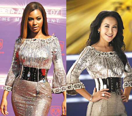 中新網(wǎng)12月19日電 東西天后不約而同,都愛D&G的閃耀性感,沉浸在愛河中的李玟,日前就穿上碧昂絲曾經(jīng)穿過的同一件手工禮服,登上長(zhǎng)城拍奧運(yùn)MV。