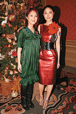 據(jù)香港媒體報道,楊千嬅前晚與陳慧琳(Kelly)、曾志偉、方力申、楊愛瑾、狄龍夫婦及特首曾蔭權(quán)等出席香港電影發(fā)展局主辦的“迎接奧運(yùn)圣誕酒會”,二人分別穿上紅色及綠色的服飾登場,并排在一起時甚具圣誕氣氛。