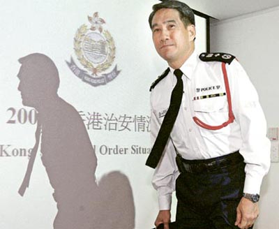 香港警務處長鄧竟成出席記者會回答提問。