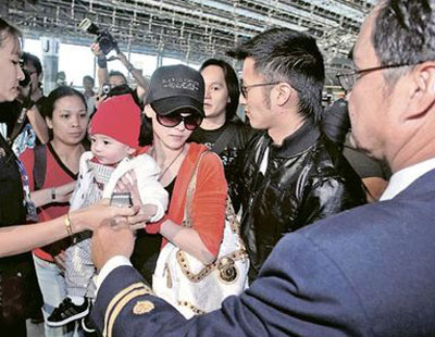 自“艷照門”爆發(fā)后,張柏芝一直隱居家中。前日傍晚6點(diǎn)多,秘密往泰國探班的張柏芝抱著兒子,在謝霆鋒陪伴下,在泰國機(jī)場登機(jī),當(dāng)晚11點(diǎn)左右到達(dá)香港機(jī)場。一家三口的集體亮相,在兩地引發(fā)了一場新聞大戰(zhàn),登機(jī)和到達(dá)的場面均很混亂。