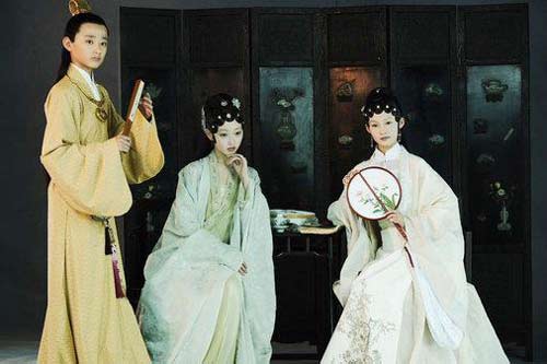 “其實曹雪芹寫紅樓,寫得是很模糊的。紅樓有一個模模糊糊的明朝的影子,但很多細節都是清朝的。”葉錦添表示,曹雪芹筆下具體描述過的服飾,他都做到了依言裁衣,但對于一些模糊的地方,他必須自己創造,自己找出一個統一的藝術風格。而對于網友爭議較大的改良“額妝”,也就是釵、黛二人額頭貌似京劇貼片的頭飾,繼沈從文之后、中國最權威的服飾專家黃能馥老先生則認為,這種“額妝”非常好地體現出官宦人家大家閨秀的身份、地位,黃老還認為新版電視劇《紅樓夢》中的服裝做得非常好,尤其是“官服很氣派”,總體而言,“服裝的材料、質地,都很能顯露當時大家的風范,顏色方面也很考究”。