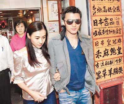 衣著端莊的張柏芝挽緊老公離開食店。