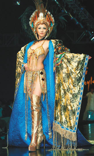 中新網7月14日電 據臺灣媒體報道,臺灣名模陳思璇昨天金光閃閃走秀,后臺同事見到她都搖頭嘆息:“錢真難賺!”因為她的頭飾很重,又要粘假胡子,里面還穿金色比基尼,舉手投足、氛圍掌握都是巨大挑戰(zhàn)。陳思璇笑說:“我盡量想成在拍電影‘滿城盡帶黃金甲’啦。”
