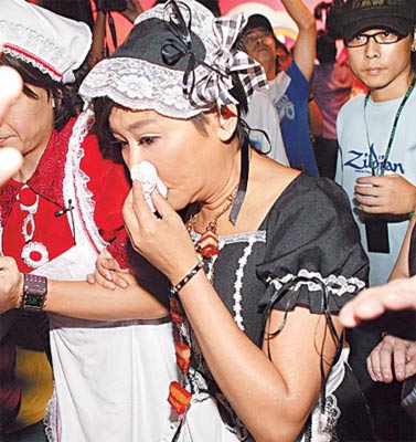藍(lán)心湄在攝影棚飆淚后,激動(dòng)心情難平復(fù),記者目擊她錄像空檔時(shí)眼神放空,臉上若有所思,看來心事重重,收工后有觀眾要求合影,她鏡頭前勉強(qiáng)微笑,最后駕車離去,連晚餐都沒吃,直奔東區(qū)住宅休息。