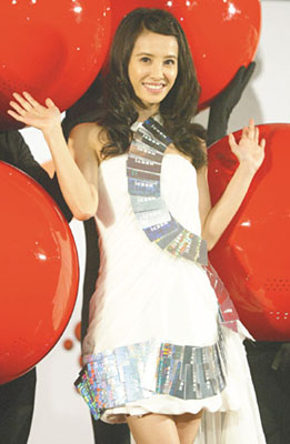 配合代言活動,她昨天穿的一件禮服,被歌迷以超商儲值卡10500點標走。事實上,她的歌曲“舞娘”、“Love Love Love”因在奧運會場上放送,意外被歐洲注意到,因而進入排行榜,她先前又進入英國某雜志AskMen網站Top99位女星排行榜,影響力被形容為“喊水會結凍”,而宣稱中文不好的她,果然聽不懂。