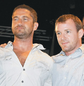 杰哈·巴特勒(左)在蓋·瑞奇(右)婚變前合作電影《搖滾黑幫》。