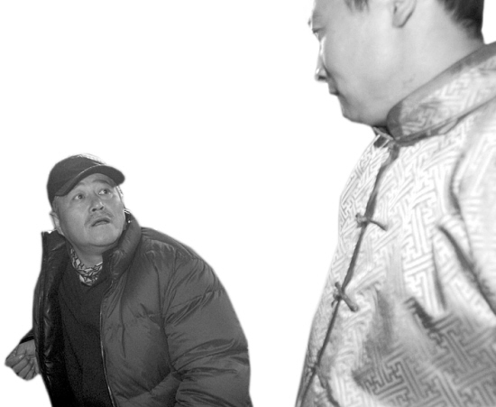 上午9時,記者來到關東影視城里的貝勒府,當天拍攝是全劇第29集的戲份,大致情節是,出走的四姨太回到貝勒府,哭著給貝勒爺送信,稱日本人已找到了藏寶地……戲開拍前,本山有意留給弟子們發揮空間,他坐在監視器前,熟練地帶上耳麥,“預備!開始!”本山的話音剛落,吳一迪的眼淚噴薄而出,演員們正演得起勁,本山突然問道:“什么聲音?”原來由于風大,木門發出“當當”聲,見狀,本山對劉流說:“哈貝勒挺招風啊。”語畢,現場笑成一團。