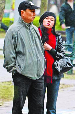 曾馨瑩(右)嫁給郭臺銘后已有身孕,日前2人在街頭散步。