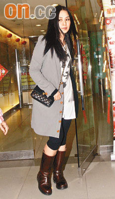 而“壽星女”阿嬌則于凌晨四時十五分由友人陪同離開,留了一頭長發的她,明顯經過悉心打扮,一身灰色中褸配以長靴,斜挎Chanel手袋,還涂上彩藍色指甲油,心情大好。