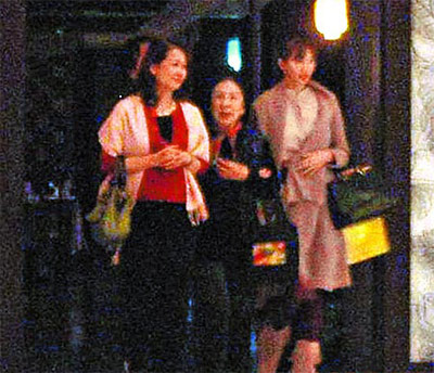 用餐完畢,林志玲(右起)與奶奶、媽媽挽著手離開。