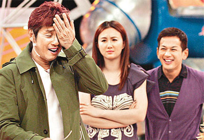 譚詠麟與君如玩游戲時強顏歡笑,在鏡頭后還不自覺地扁嘴。圖片均來自香港《太陽報》