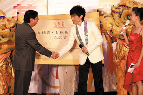 英皇娛樂行政總裁吳雨一邊送上一方印有“古巨基”字樣的玉璽作為賀禮,一邊向古巨基提出要求:“年底要為英皇娛樂爭取拿到一個最受歡迎男歌手大獎。”
