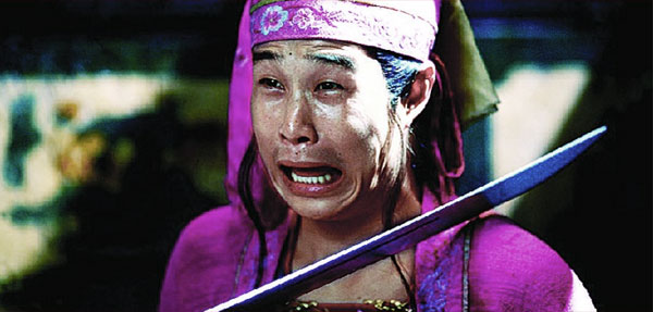 張藝謀新片《三槍拍案驚奇》昨(22)日發最新劇照,包括閆妮、孫紅雷等造型都得以曝光,其中小沈陽的“哭相”最為搞笑。頭戴粉紅帽的“粉紅男郎”小沈陽,本就有幾分喜劇色彩,面對刀劍的他原來也很怕死,“哇”的一聲大哭,露出了一排整齊的牙齒,頗有效果。同時孫紅雷的最新造型照也發出,一身盔甲的他趁著夜色出現在“麻子面館”門口,手持弓箭殺氣騰騰。從所有劇照來看,張藝謀對色彩的追求依然鮮艷,服裝造型相當考究。(記者 唐愛明)