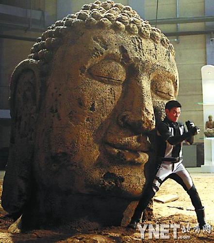 雖然已事先備下了保護措設(shè),但在推動佛像的過程中,千余斤的巨物突然失控,瞬間重重砸下,將劉德華劈頭蓋臉整個壓在下面。現(xiàn)場的工作人員嚇得忙一擁而上將劉德華攙扶起來,不料卻又導(dǎo)致畫面穿幫而無法使用。劉德華此時雖然一身疼痛,被重壓折磨得喘不過氣來,卻毫無怨言,恢復(fù)過來后毅然再次親自上陣。為了達到最震撼的視覺效果,每一次拍完后,劉德華還會不顧疼痛,跑到監(jiān)視器前面回看拍攝畫面,有不甚滿意之處就要求重拍。每一次都險象環(huán)生,劉德華卻鎮(zhèn)定地勸慰工作人員不要緊張,他的敬業(yè)精神令在場的工作人員敬佩感動不已。