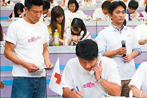 據“聯合早報”消息,香港演藝圈為了幫助臺灣受災民眾盡快重建家園,積極動員,與臺灣藝人聯手舉辦《88水災關愛行動》。劉德華水災后第一時間飛抵臺灣賑災,返港后更是召集200位藝人,趕工錄制“88水災關愛行動”主題曲《滔滔千里心》。擔任總召的他,一下飛機便直奔活動現場,強打精神緊盯各個環節,不但親手寫大字報,更扯破喉嚨指揮全場。