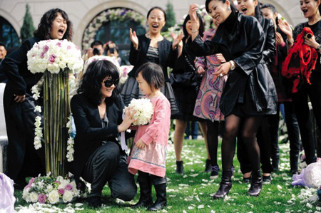 有媽媽王菲的幫忙,有點怕生的李嫣順利的接到捧花,成為整場最年輕的幸運兒。
