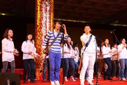 為歡迎美國(guó)總統(tǒng)奧巴馬訪華,前晚一場(chǎng)特別的慶祝活動(dòng)在人民大會(huì)堂舉行,中國(guó)文藝界明星紛紛登臺(tái)獻(xiàn)藝,羽泉作為流行樂壇的唯一代表壓軸獻(xiàn)唱歌曲。