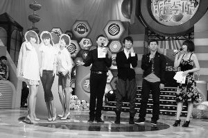 接下去開始錄明星和學員們配合表演的環節,逐一錄完后仍不見S.H.E出現,巫啟賢也似乎對她們的到場時間并沒太大把握,他說“如果節目錄完還到不了,我只好自己上臺唱《SUPER STAR》了。”此后,節目組只得搬出S.H.E真人大小的紙像,擺在臺上“參與”互動。
