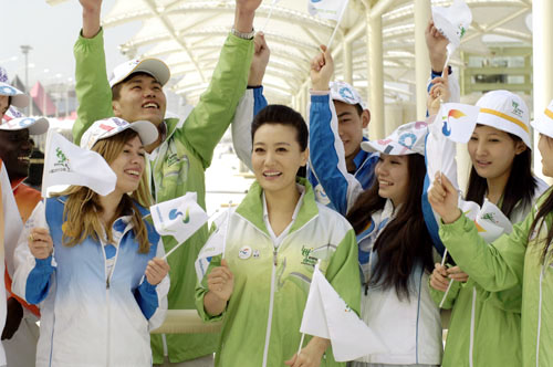 在攝制組的安排下,大家先后在世博園區、黃浦江邊、九六廣場等地取景拍攝。拍攝過程非常辛苦,時間緊湊、要求嚴格,但譚晶表現得十分敬業,不時與導演組溝通,還與其他志愿者交流心得。而來自上海海事大學的數十名大學生志愿者在拍攝過程中顯得格外興奮,“作為世博會志愿者,能參加這樣的活動感到很榮幸,并且是和譚晶姐姐一起拍攝,雖然在MV中只是一片綠葉,但也很開心!