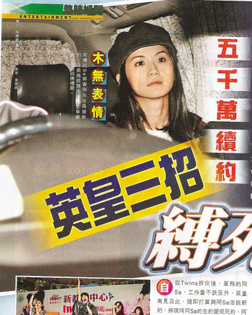在Twins拆伙期間,單飛的阿Sa工作量不跌反升。當(dāng)時不僅有其他唱片公司打算高薪挖角,而且她與鄭中基仍是夫妻關(guān)系,有傳鄭中基有意撬她到金牌組成夫妻檔賺錢,在種種“誘惑”之下,英皇與阿Sa的新合約問題一直處于拉鋸階段,久久未能成事。 現(xiàn)在“Sa基”婚變,英皇趁機再談續(xù)約。為了讓阿Sa下定決心,英皇準備以5000萬港元的天價利誘阿Sa,并承諾將力捧她,在Twins的復(fù)合演唱會后讓阿Sa再次單飛工作。有知情人士說:“阿Sa本來就和公司關(guān)系非常好,現(xiàn)在和鄭中基劃清界線后,更加要搏命賺錢。公司給出那么優(yōu)厚的條件,阿Sa很難不心動。”